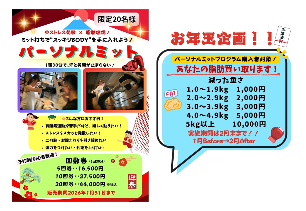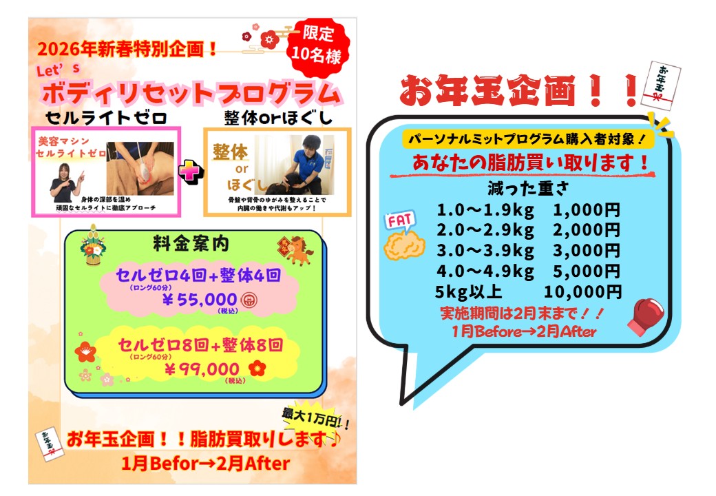 また、お年玉企画として「あなたの脂肪買い取ります!」ということで減った脂肪の数値に応じてキャッシュバックがあります!!
